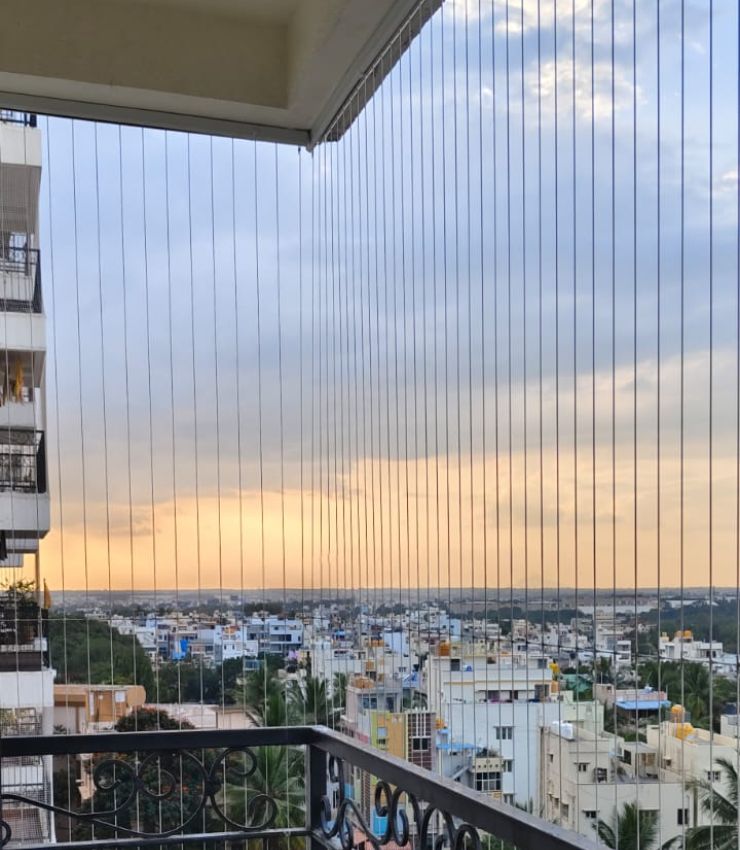 Secure your balcony with Invisible Grills—durable, corrosion-resistant, and stylish. Enjoy unobstructed views, safety for children and pets, and protection from birds and intruders, all with sleek, modern design.